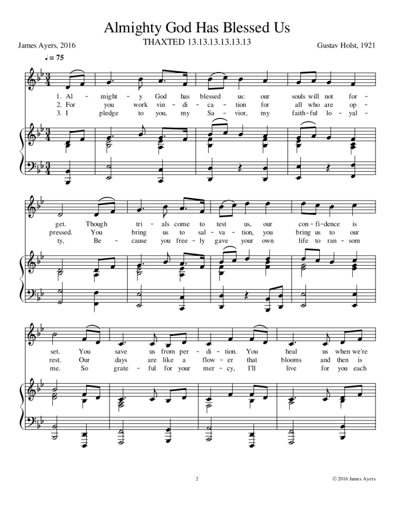 Words: James Ayers © 2016. Tune: Thaxted Gustav Holst, 1921 [“I Vow to Thee, My Country”]